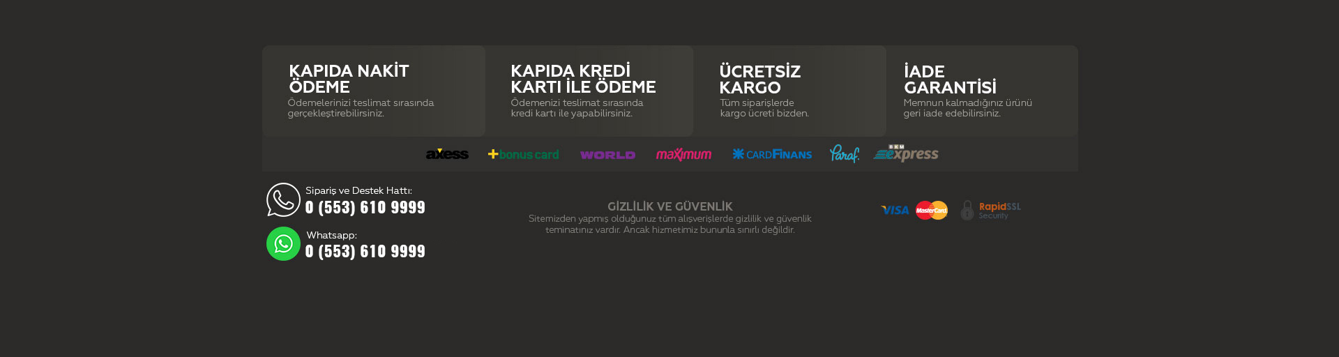 Üyelik ve sipariş işlemleri gerçekleşmesi sırasında girilen bilgiler SSL güvenlik sistemiyle korunmaktadır.